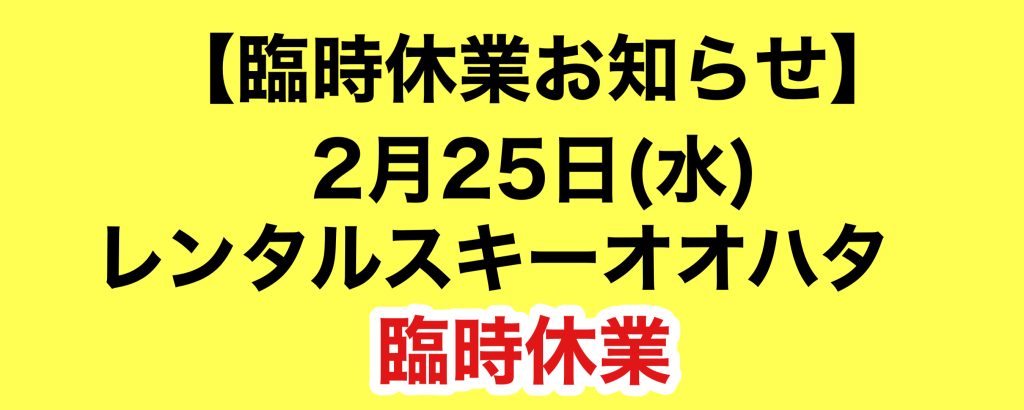 2月25日(水)レンタルスキーオオハタ臨時休業のお知らせNew!!
