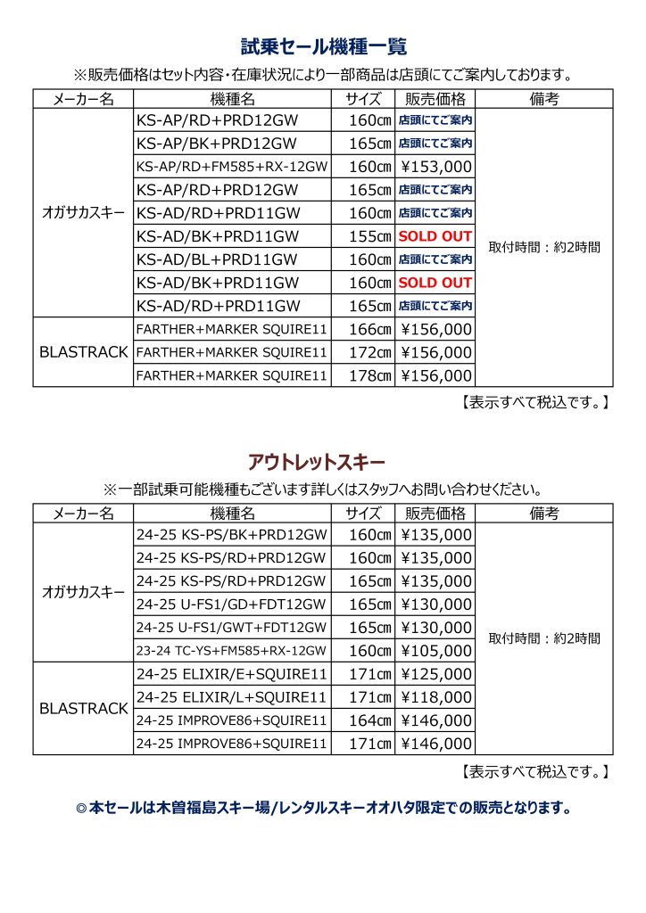 オガサカスキー.Blastrack試乗セール【開催中】