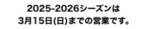 | 営業期間 | 2025シーズン令和7年12月20日(土)~令和8年3月22日(日)※積雪状況により延長又は短縮の場合があります。 |