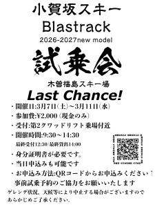 Last Chance!26-27NEWオガサカスキー&Blastrack試乗会